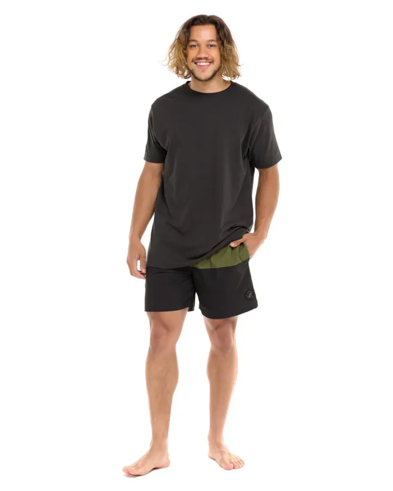 Created from recycled polyester/spandex, these 17″ volley shorts feature full elastic ease, an outside drawstring waist, and practical side pockets with mesh. Stay cool with mesh liner and leg vents. The woven label patch adds a rugged finish to your beach-ready look.