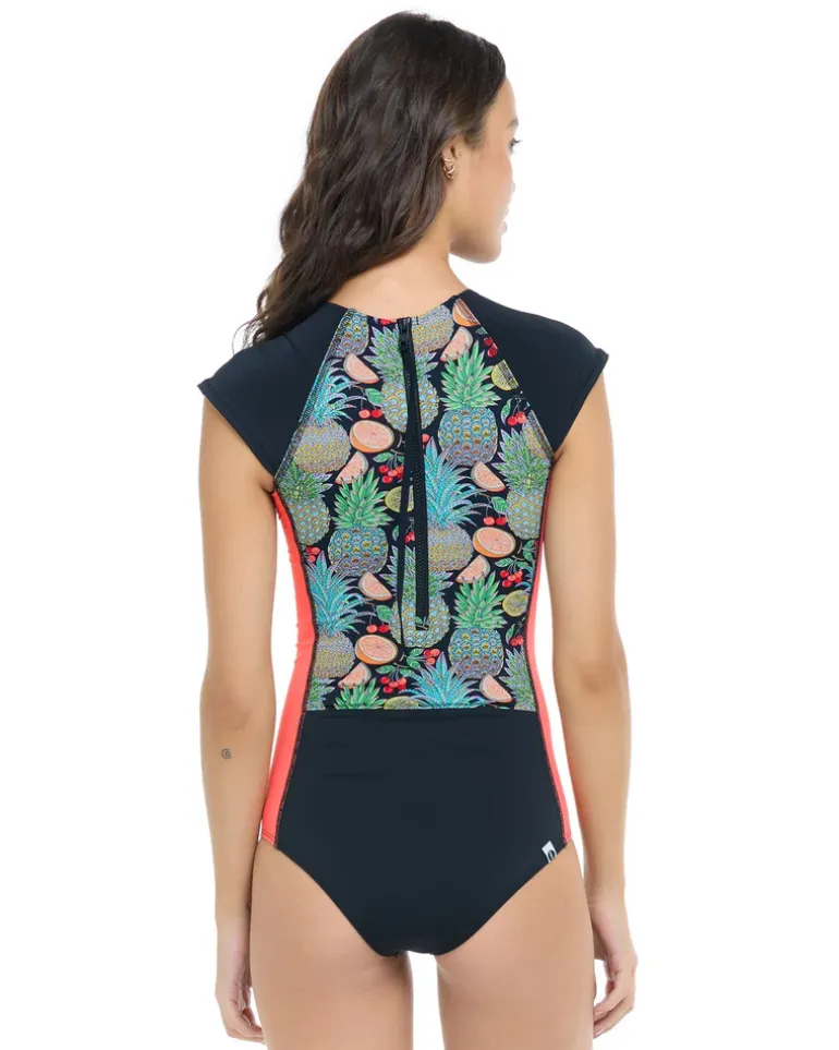If surfing is in your DNA, you’ll be living happily Everly after with this sweet one-piece swimsuit. Designed with cute cap sleeves, a simple crew neck, sleek flatlock seams, and mid coverage for your backside, no wave is too big (or too small) when you have Everly by your side.