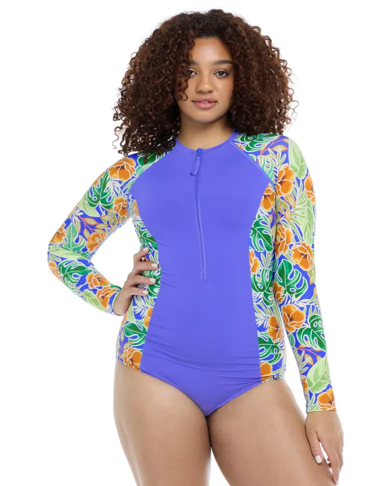 Make a splash in the Hayden one-piece swimsuit! With UPF 50 protection, you can enjoy the sun without worry. The raglan long sleeves and crew neck provide extra coverage, while the zip front allows easy on and off. The flatlock seams ensure a comfortable