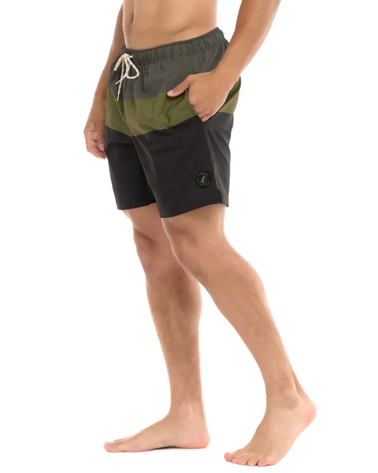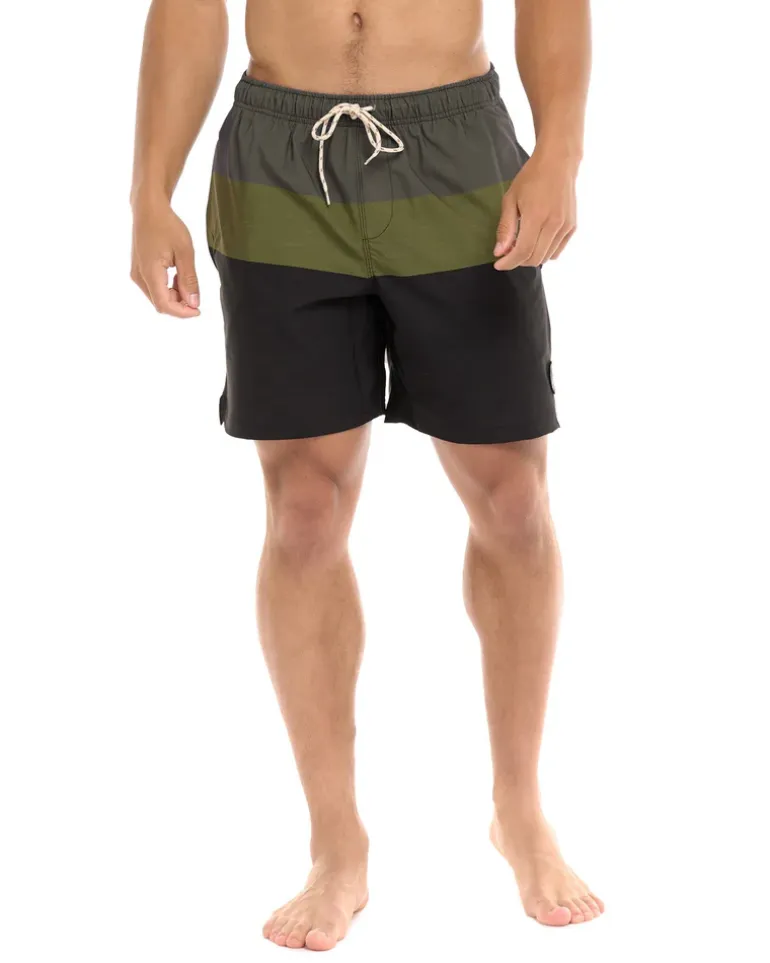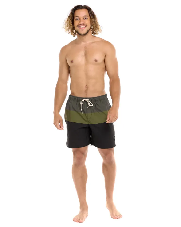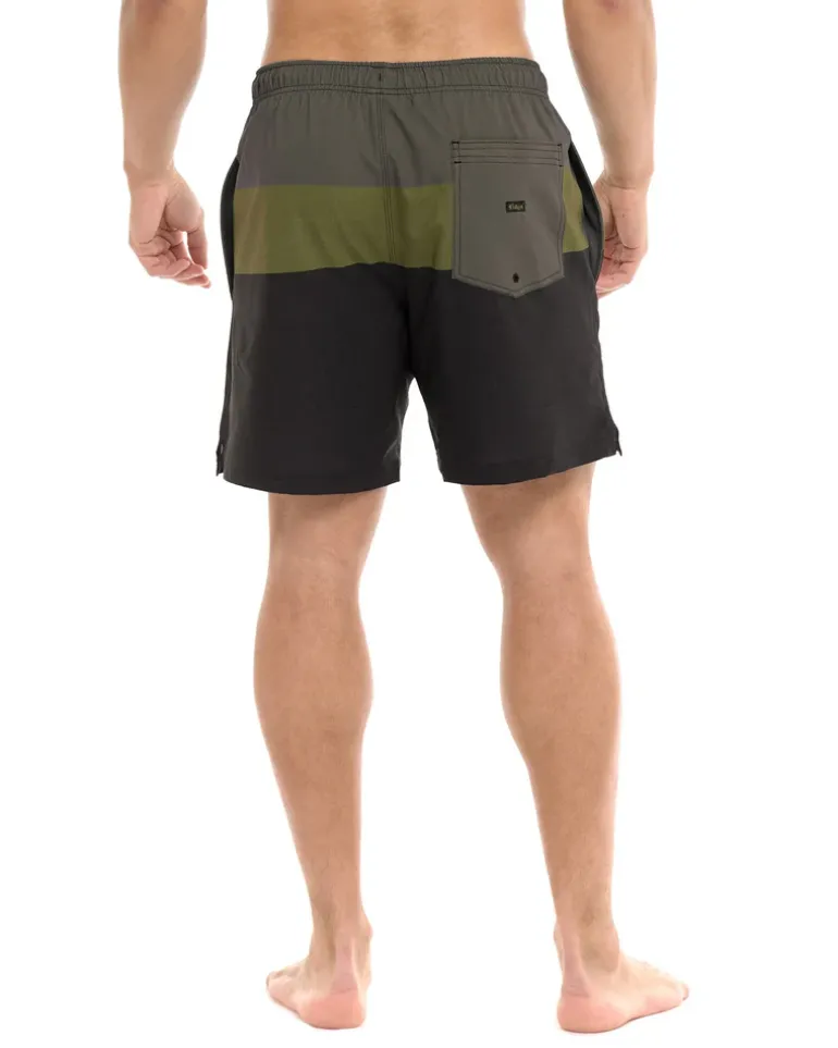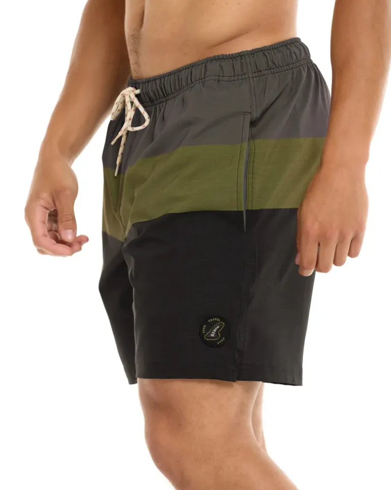 Created from recycled polyester/spandex, these 17″ volley shorts feature full elastic ease, an outside drawstring waist, and practical side pockets with mesh. Stay cool with mesh liner and leg vents. The woven label patch adds a rugged finish to your beach-ready look.