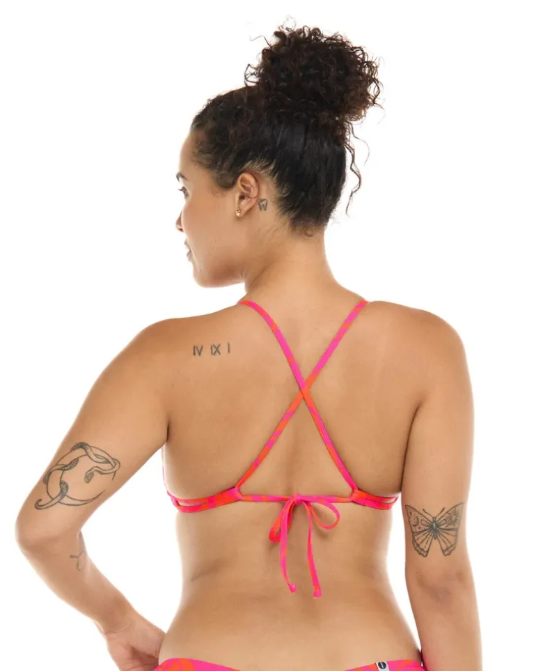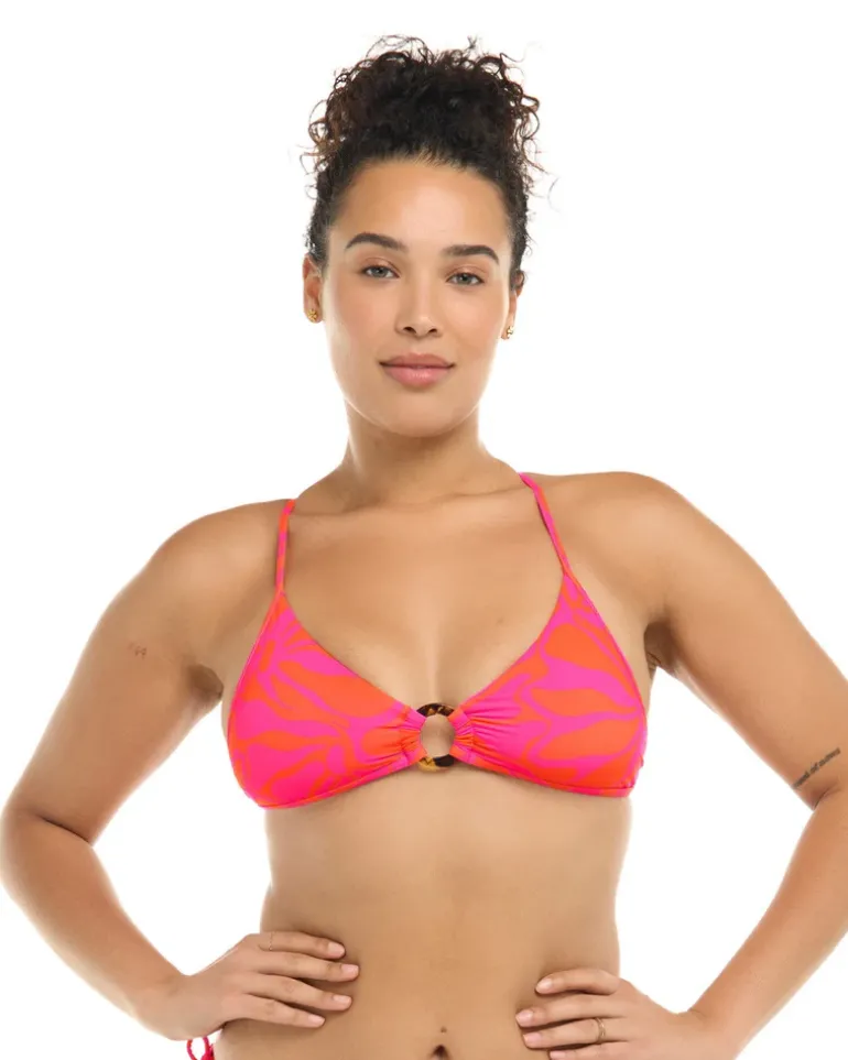 Meet the Arlet top! This fixed triangle bikini features a stylish ring detail, removable soft cups for comfort, and a versatile 2-way tie back for the perfect fit. Perfect for leveling up your beach look and feeling your best all summer long.