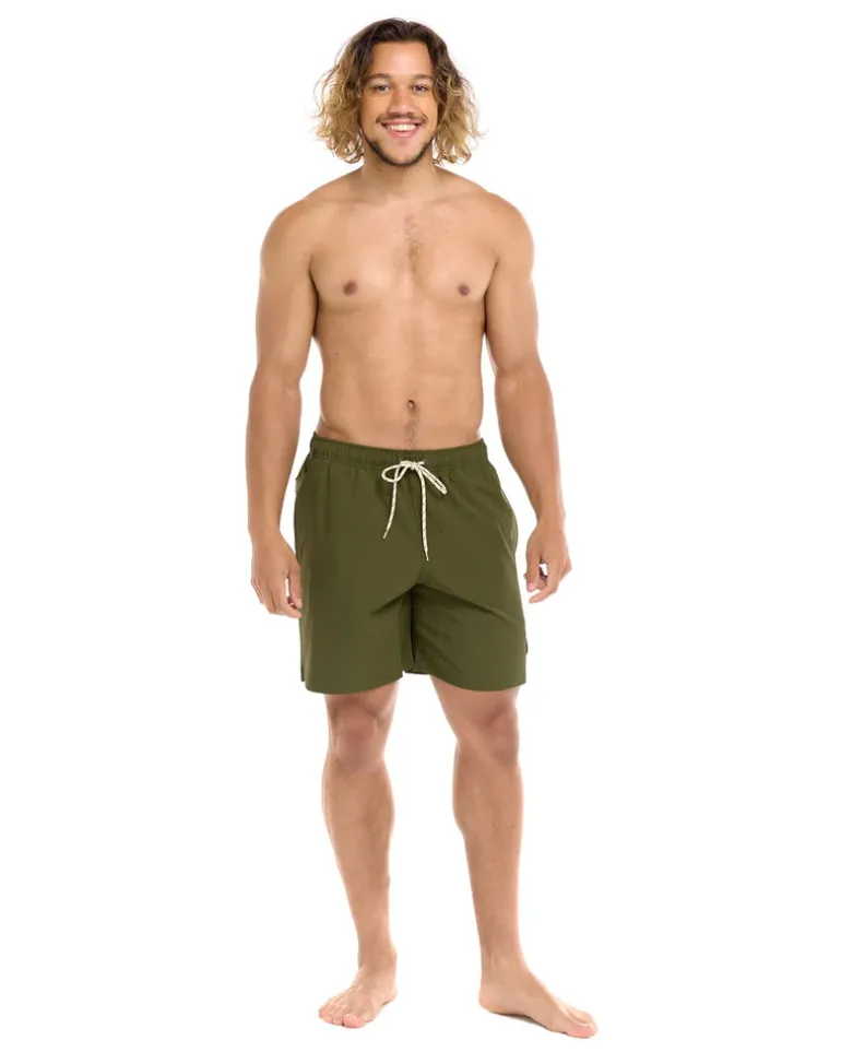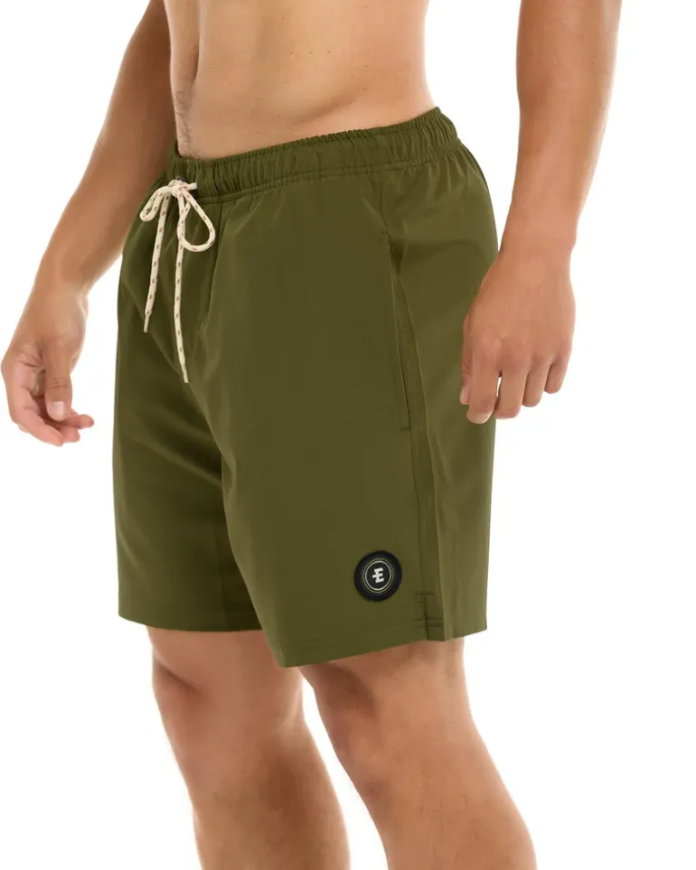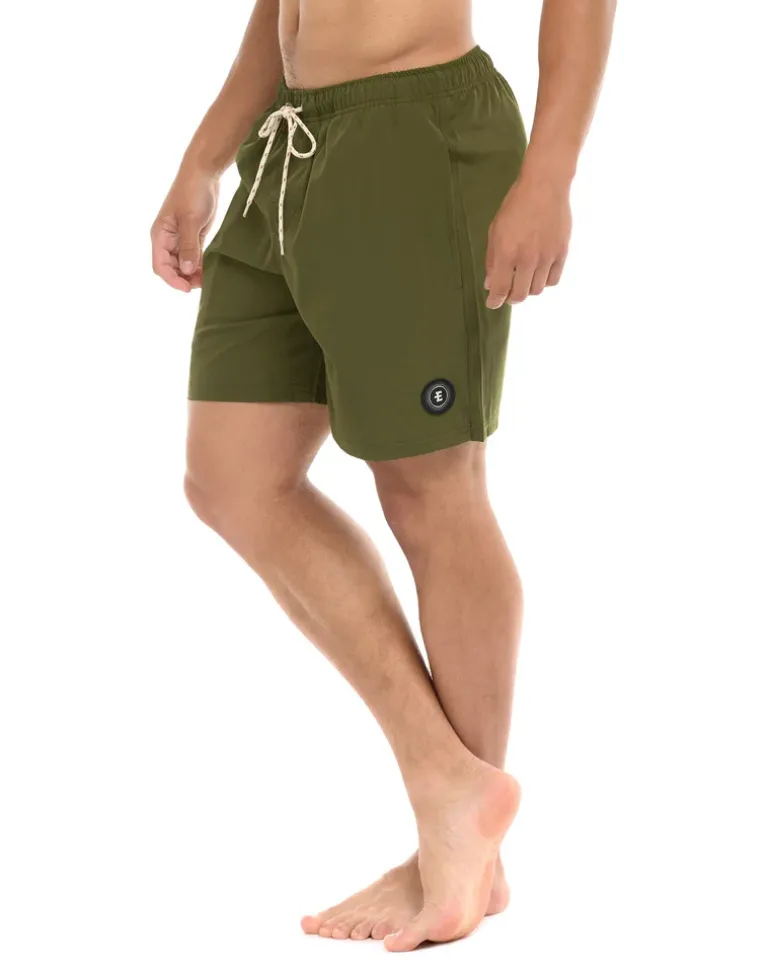Unleash the surf spirit. Crafted from recycled polyester/spandex, these 17″ outseam Creek volley offer full elastic comfort, an outside drawstring waist, and practicality with back patch and side pockets. Mesh liner and leg vents keep you cool, while the woven label patch adds rugged authenticity. Surf’s up, ride on!