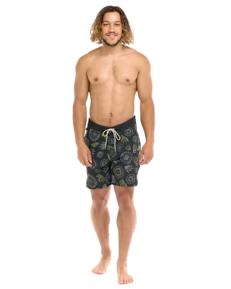 Where style meets the sea. With recycled polyester/spandex, these boardshorts boast an outside drawstring waist for a fit that’s just right. Side pockets with mesh and a back patch pocket with button closure bring convenience. Leg vents ensure comfort in every wave. The woven label patch and novelty jacquard loop add a playful touch. Prepare for beachside adventures that stand out.