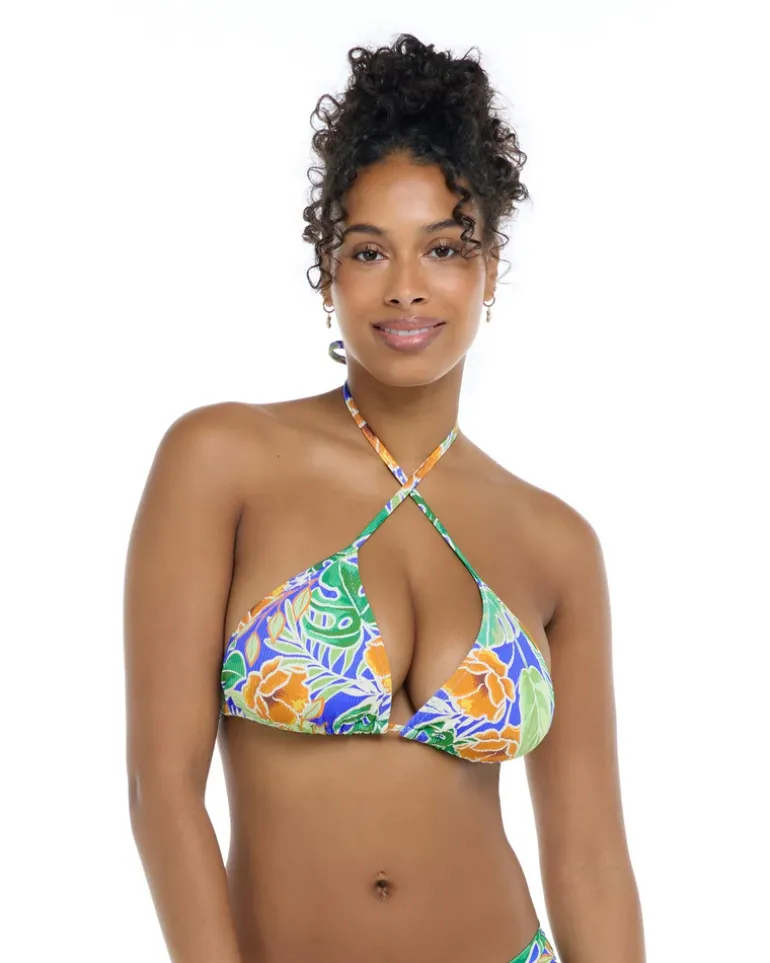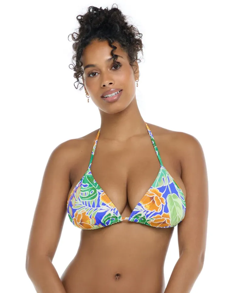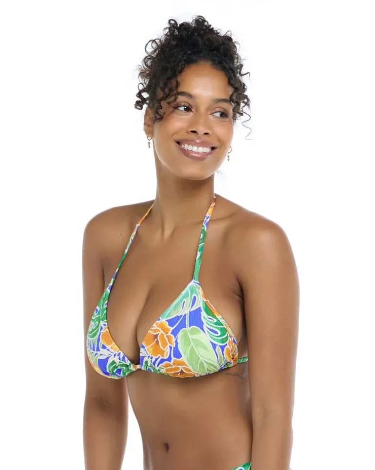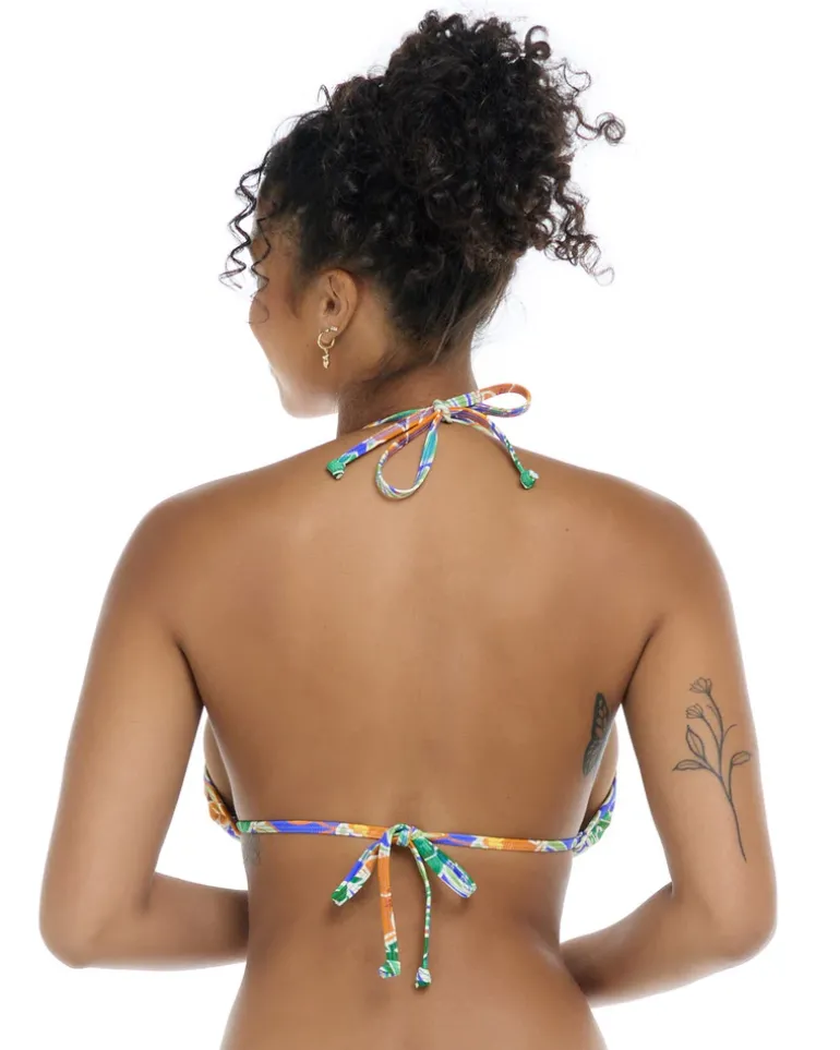 This roomier version of our classic Kali Slider top is suited for D-cup busts. An essential piece for every swimsuit drawer, our design features removable soft cups and adjustable ties around back for an easy breezy fit.