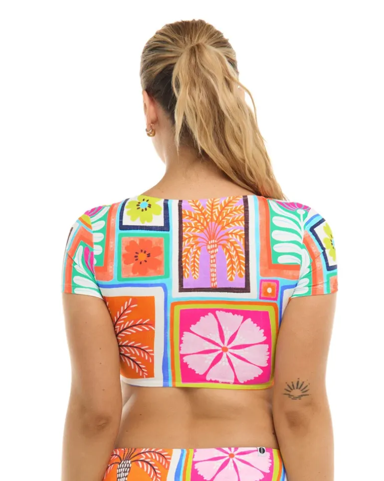 We’ve totally got a crush on this crop: the Sandrine top’s cap sleeves and v-neck are a beach-ready version of your favorite crop top, perfectly pulled together with a pretty tie-front detail at the bust.